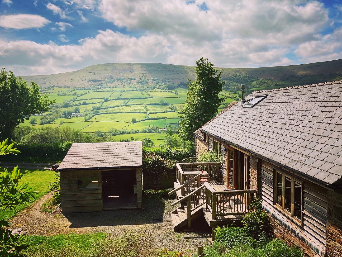 On the edge of the Brecon Beacons National Park and overlooking the Black Mountains.