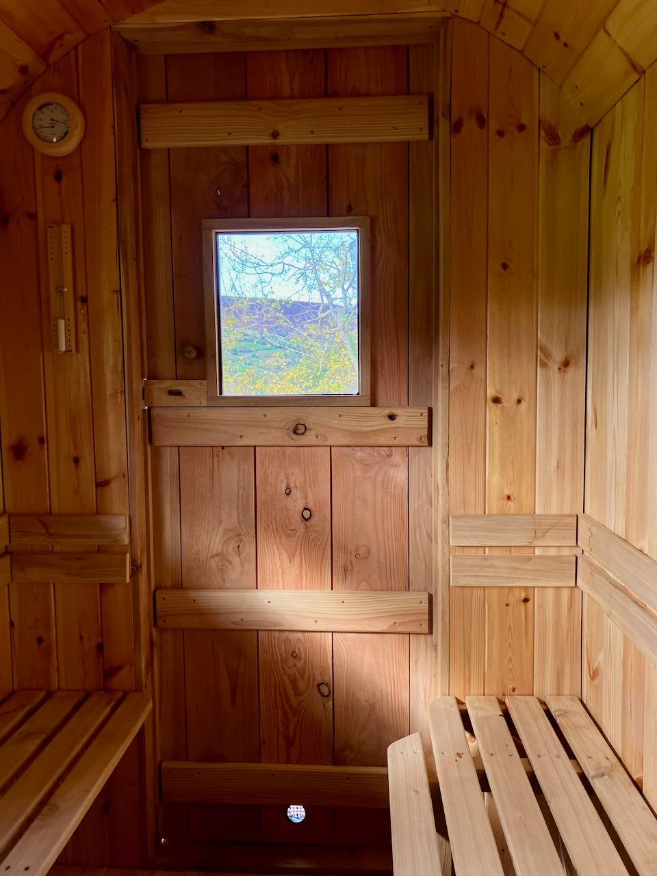 You also have access to use the Wild Sauna during your stay - a beautiful sauna for 2-4 people overlooking the hills and with a cold spring fed plunge and shower to cool off in.